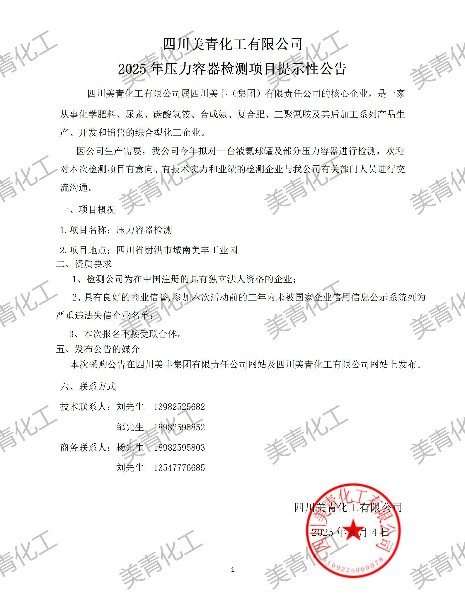 2025年壓力容器檢測(cè)項(xiàng)目提示性公告